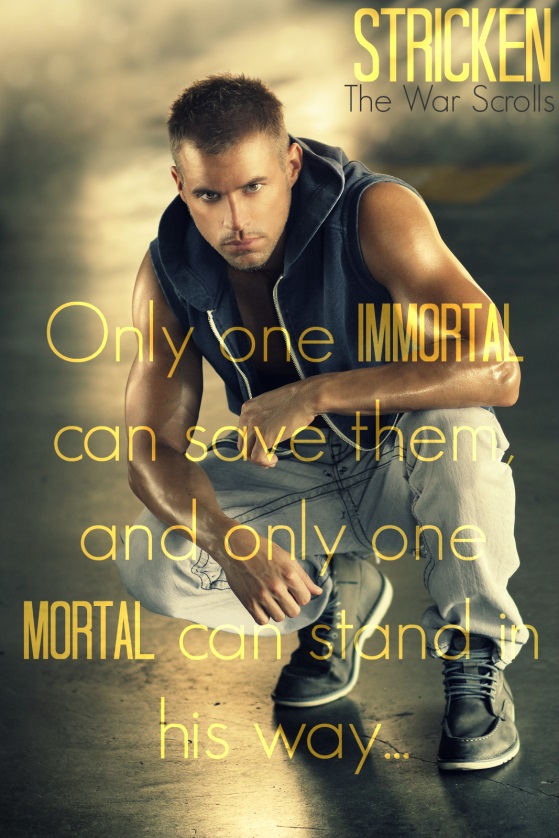 Stricken is an urban fantasy about angels, demons, and a lethal virus killing anyone with angel blood. Killian St. James, an angelic warrior, and his two brothers are searching for a cure when they find Aubrey Carter, a human with angel blood who's being hunted down by infected shapeshifters. Killian isn't sure why she's being chased, but offers to help her find out. The more he learns about her, the more he realizes that her past might just hold the answers he's seeking. Because he's falling for her, this presents all sorts of problems for him and for her, leading him to a choice between the future of his people and her life.